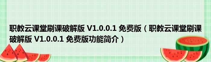 导读 大家好,关于职教云课堂刷课破解版 V1 0 0 1 免费版,职教云课堂刷课破解版 V1 0 0 1 免费版功能简介这个很多人还不知道,小勒来为大家解