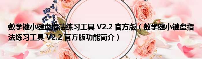 导读 大家好,关于数学键小键盘指法练习工具 V2 2 官方版,数学键小键盘指法练习工具 V2 2 官方版功能简介这个很多人还不知道,小勒来为大家解