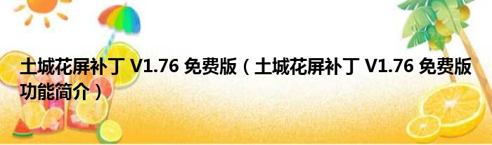 土城花屏补丁 V1.76 免费版(土城花屏补丁 V1.76 免费版功能简介)
