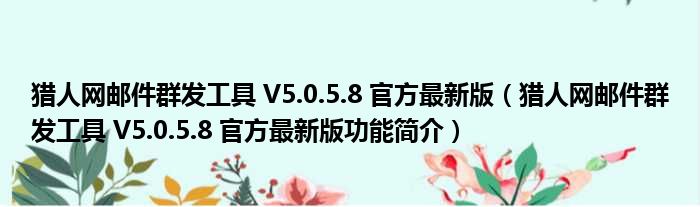 猎人网邮件群发工具 V5.0.5.8 官方最新版(猎人网邮件群发工具 V5.0.5.8 官方最新版功能简介)