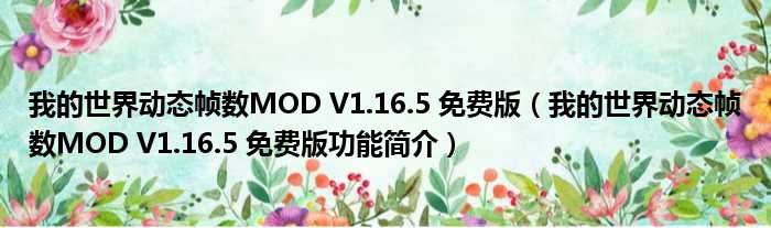 导读 大家好,关于我的世界动态帧数MOD V1 16 5 免费版,我的世界动态帧数MOD V1 16 5 免费版功能简介这个很多人还不知道,小勒来为大家解答以