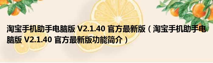 淘宝手机助手电脑版 V2.1.40 官方最新版(淘宝手机助手电脑版 V2.1.40 官方最新版功能简介)