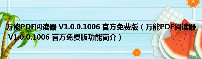 万能PDF阅读器 V1.0.0.1006 官方免费版(万能PDF阅读器 V1.0.0.1006 官方免费版功能简介)