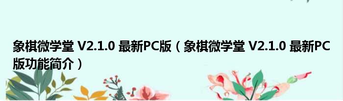 象棋微学堂 V2.1.0 最新PC版(象棋微学堂 V2.1.0 最新PC版功能简介)