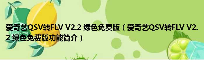 爱奇艺QSV转FLV V2.2 绿色免费版(爱奇艺QSV转FLV V2.2 绿色免费版功能简介)