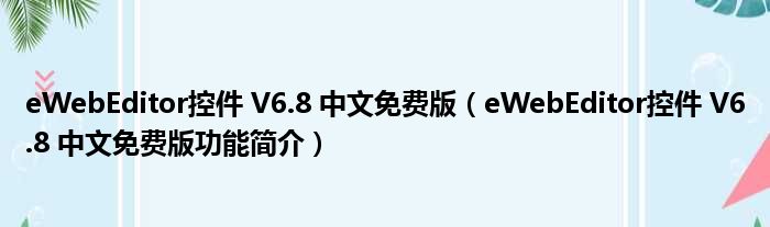 eWebEditor控件 V6.8 中文免费版(eWebEditor控件 V6.8 中文免费版功能简介)