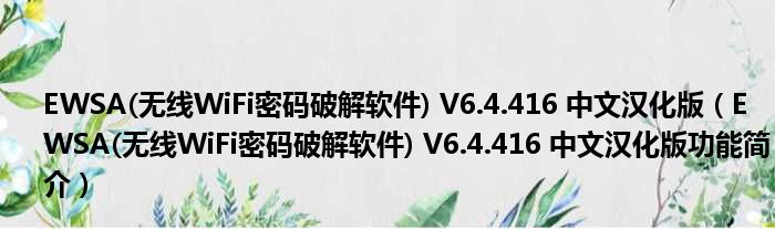 EWSA(无线WiFi密码破解软件) V6.4.416 中文汉化版(EWSA(无线WiFi密码破解软件) V6.4.416 中文汉化版功能简介)