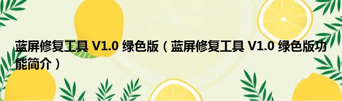 导读 大家好,关于蓝屏修复工具 V1 0 绿色版,蓝屏修复工具 V1 0 绿色版功能简介这个很多人还不知道,小勒来为大家解答以上的问题,现在让我们