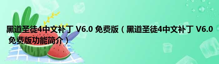 黑道圣徒4中文补丁 V6.0 免费版(黑道圣徒4中文补丁 V6.0 免费版功能简介)