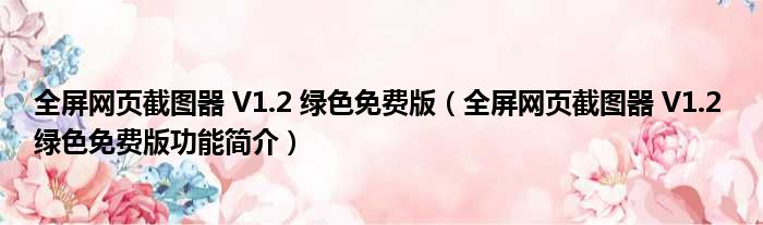 全屏网页截图器 V1.2 绿色免费版(全屏网页截图器 V1.2 绿色免费版功能简介)