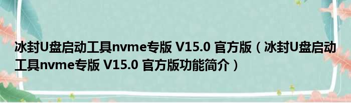 冰封U盘启动工具nvme专版 V15.0 官方版(冰封U盘启动工具nvme专版 V15.0 官方版功能简介)
