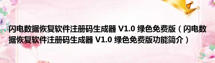闪电数据恢复软件注册码生成器 V1.0 绿色免费版(闪电数据恢复软件注册码生成器 V1.0 绿色免费版功能简介)