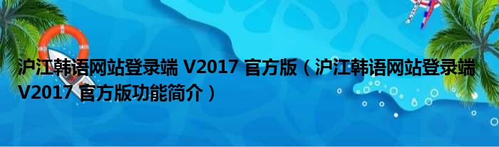 沪江韩语网站登录端 V2017 官方版(沪江韩语网站登录端 V2017 官方版功能简介)