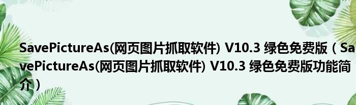 SavePictureAs(网页图片抓取软件) V10.3 绿色免费版(SavePictureAs(网页图片抓取软件) V10.3 绿色免费版功能简介)