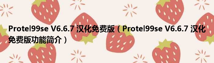 Protel99se V6.6.7 汉化免费版(Protel99se V6.6.7 汉化免费版功能简介)
