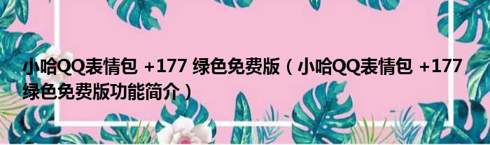导读 大家好,关于小哈QQ表情包 +177 绿色免费版,小哈QQ表情包 +177 绿色免费版功能简介这个很多人还不知道,小勒来为大家解答以上的问题,现