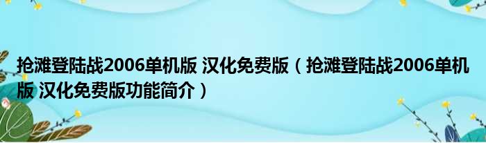 抢滩登陆战2006单机版 汉化免费版(抢滩登陆战2006单机版 汉化免费版功能简介)