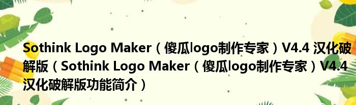 Sothink Logo Maker(傻瓜logo制作专家)V4.4 汉化破解版(Sothink Logo Maker(傻瓜logo制作专家)V4.4 汉化破解版功能简介)