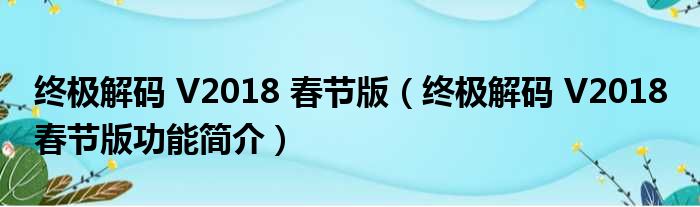 终极解码 V2018 春节版(终极解码 V2018 春节版功能简介)