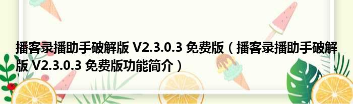 导读 大家好,关于播客录播助手破解版 V2 3 0 3 免费版,播客录播助手破解版 V2 3 0 3 免费版功能简介这个很多人还不知道,小勒来为大家解答以