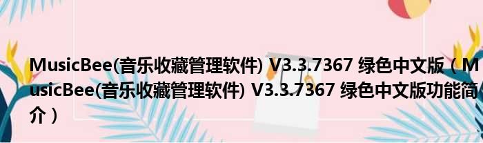 MusicBee(音乐收藏管理软件) V3.3.7367 绿色中文版(MusicBee(音乐收藏管理软件) V3.3.7367 绿色中文版功能简介)
