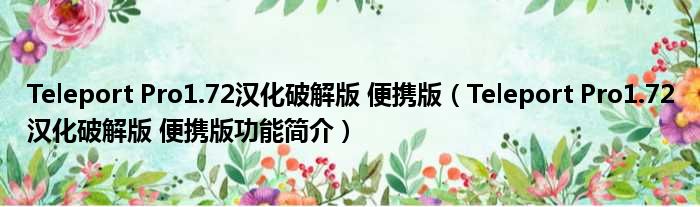 Teleport Pro1.72汉化破解版 便携版(Teleport Pro1.72汉化破解版 便携版功能简介)