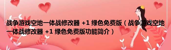 导读 大家好,关于战争游戏空地一体战修改器 +1 绿色免费版,战争游戏空地一体战修改器 +1 绿色免费版功能简介这个很多人还不知道,小勒来为大