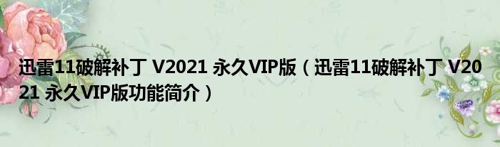 迅雷11破解补丁 V2021 永久VIP版(迅雷11破解补丁 V2021 永久VIP版功能简介)