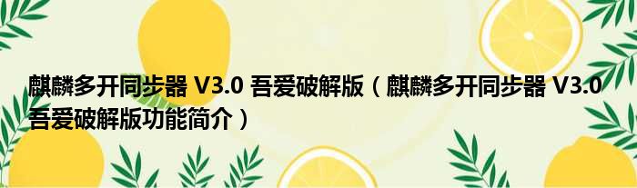 导读 大家好,关于麒麟多开同步器 V3 0 吾爱破解版,麒麟多开同步器 V3 0 吾爱破解版功能简介这个很多人还不知道,小勒来为大家解答以上的问题