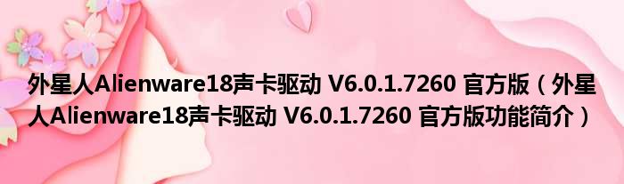 外星人Alienware18声卡驱动 V6.0.1.7260 官方版(外星人Alienware18声卡驱动 V6.0.1.7260 官方版功能简介)