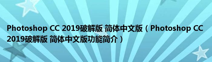 导读 大家好,关于Photoshop CC 2019破解版 简体中文版,Photoshop CC 2019破解版 简体中文版功能简介这个很多人还不知道,小勒来为大家解答
