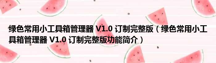 绿色常用小工具箱管理器 V1.0 订制完整版(绿色常用小工具箱管理器 V1.0 订制完整版功能简介)