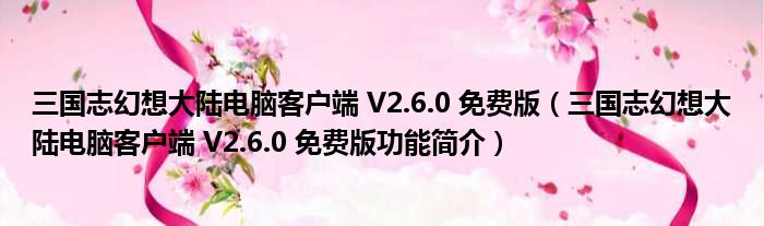 三国志幻想大陆电脑客户端 V2.6.0 免费版(三国志幻想大陆电脑客户端 V2.6.0 免费版功能简介)