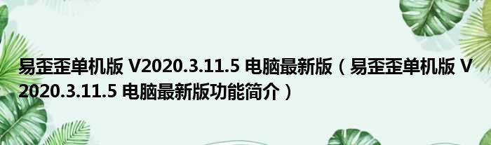易歪歪单机版 V2020.3.11.5 电脑最新版(易歪歪单机版 V2020.3.11.5 电脑最新版功能简介)