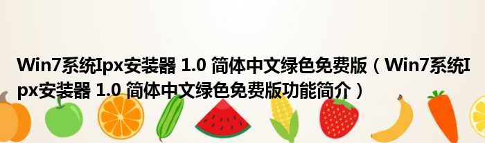 Win7系统Ipx安装器 1.0 简体中文绿色免费版(Win7系统Ipx安装器 1.0 简体中文绿色免费版功能简介)
