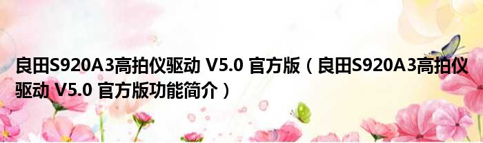 良田S920A3高拍仪驱动 V5.0 官方版(良田S920A3高拍仪驱动 V5.0 官方版功能简介)