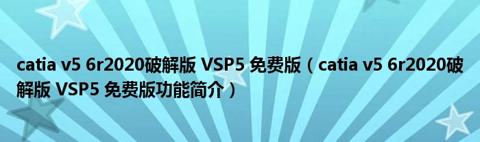 catia v5 6r2020破解版 VSP5 免费版(catia v5 6r2020破解版 VSP5 免费版功能简介)
