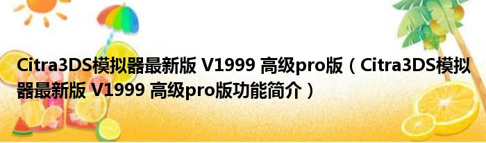 Citra3DS模拟器最新版 V1999 高级pro版(Citra3DS模拟器最新版 V1999 高级pro版功能简介)