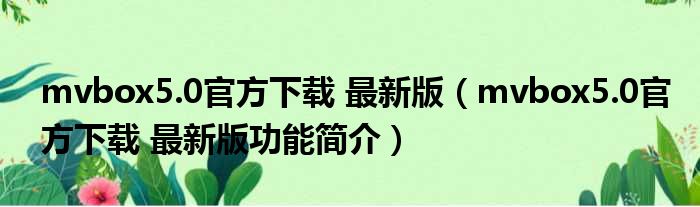 mvbox5.0官方下载 最新版(mvbox5.0官方下载 最新版功能简介)