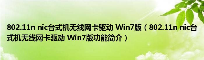 802.11n nic台式机无线网卡驱动 Win7版(802.11n nic台式机无线网卡驱动 Win7版功能简介)