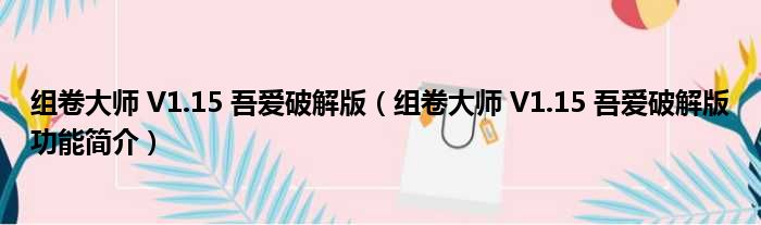组卷大师 V1.15 吾爱破解版(组卷大师 V1.15 吾爱破解版功能简介)