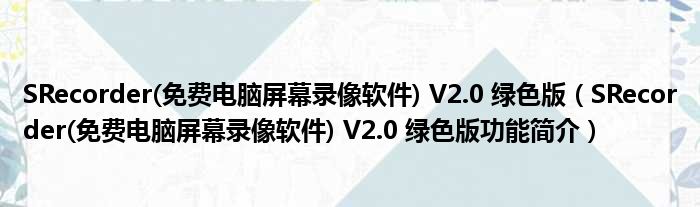 SRecorder(免费电脑屏幕录像软件) V2.0 绿色版(SRecorder(免费电脑屏幕录像软件) V2.0 绿色版功能简介)