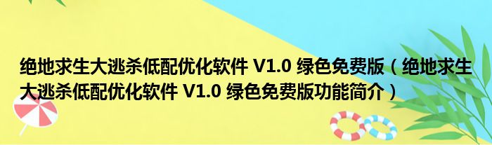 绝地求生大逃杀低配优化软件 V1.0 绿色免费版(绝地求生大逃杀低配优化软件 V1.0 绿色免费版功能简介)