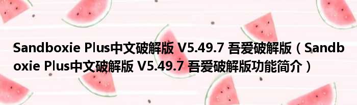 Sandboxie Plus中文破解版 V5.49.7 吾爱破解版(Sandboxie Plus中文破解版 V5.49.7 吾爱破解版功能简介)