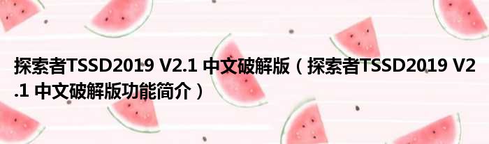 探索者TSSD2019 V2.1 中文破解版(探索者TSSD2019 V2.1 中文破解版功能简介)