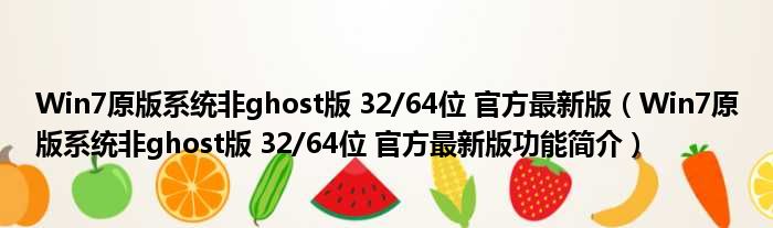 Win7原版系统非ghost版 32/64位 官方最新版(Win7原版系统非ghost版 32/64位 官方最新版功能简介)