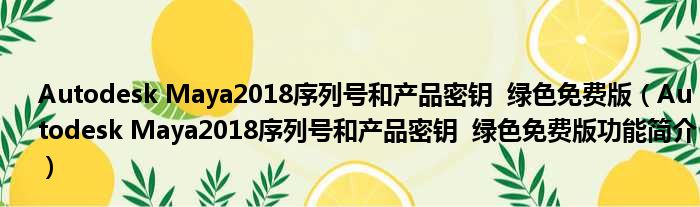 Autodesk Maya2018序列号和产品密钥 绿色免费版(Autodesk Maya2018序列号和产品密钥 绿色免费版功能简介)