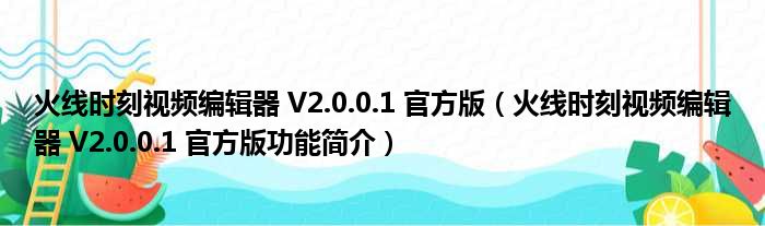 火线时刻视频编辑器 V2.0.0.1 官方版(火线时刻视频编辑器 V2.0.0.1 官方版功能简介)