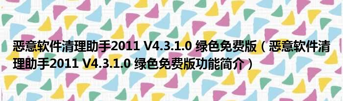 恶意软件清理助手2011 V4.3.1.0 绿色免费版(恶意软件清理助手2011 V4.3.1.0 绿色免费版功能简介)