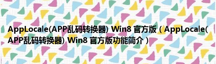 AppLocale(APP乱码转换器) Win8 官方版(AppLocale(APP乱码转换器) Win8 官方版功能简介)